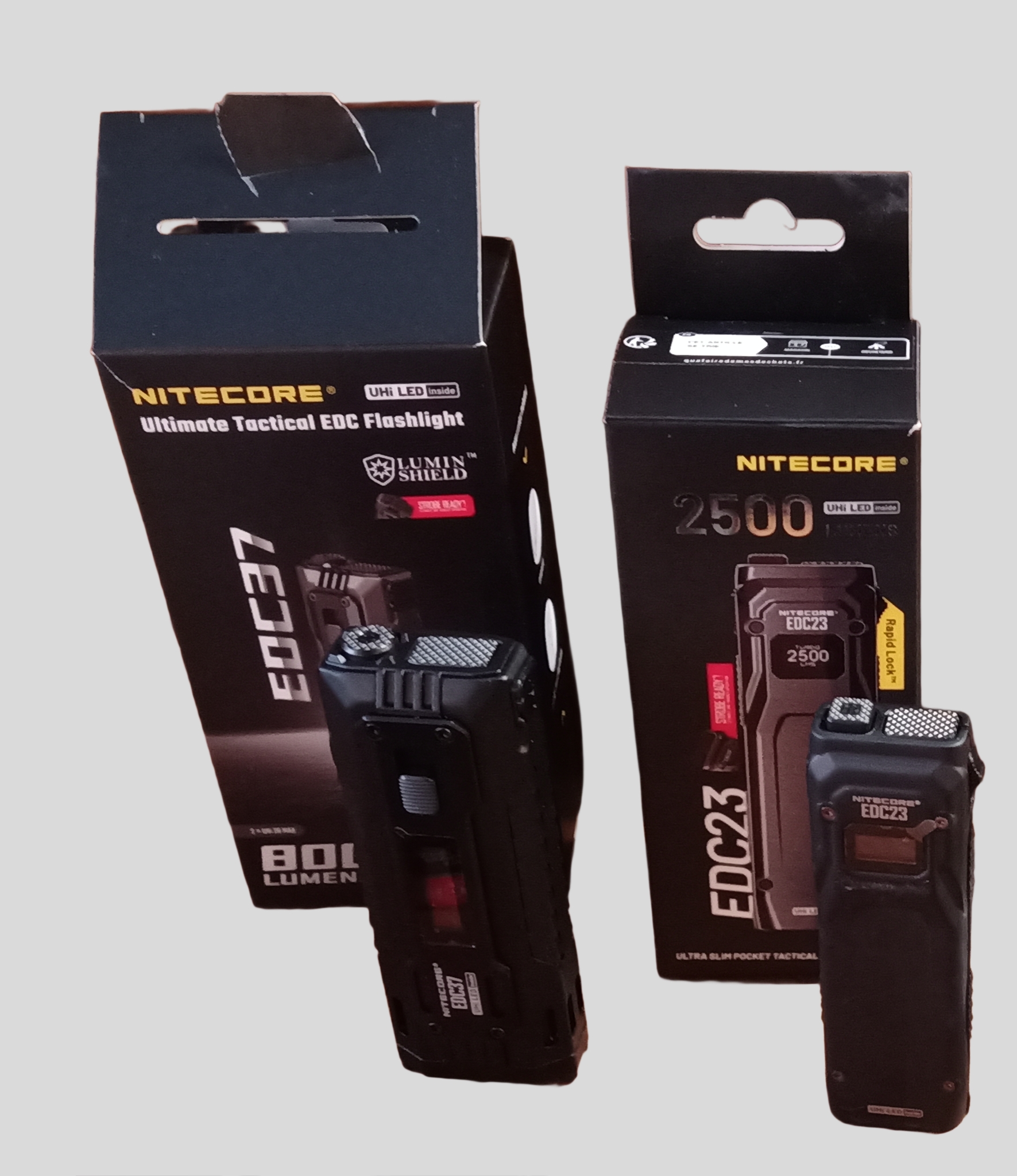La EDC37 est une lampe de poche dotée d’une puissance impressionnante de 8000 lumens et de 420 mètres de portée, de quoi offrir une visibilité optimale quelque soit la situation. Alimentée par sa batterie Li-ion intégrée de 8000mAh, celle-ci offre 190 heures d’autonomie en mode ULTRALOW, et 7h30 en mode HIGH. Avec son effet stomboscopique, cette lampe de poche est votre parfait allier contre n’importe quel agresseur.